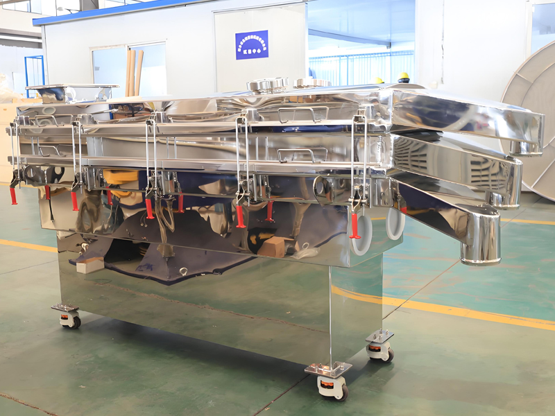 不锈钢直线振动筛利用振动电机激振作为振动源,在激振力和物料自身重力的合力作用下,物料在筛网上被抛起,同时向前作直线运动,物料从给料机均匀地进入振动筛的进料口,通过多层筛网产生不同规格的筛上物、筛下物,然后分别从各自的出口排出,以此达到筛分的目的。