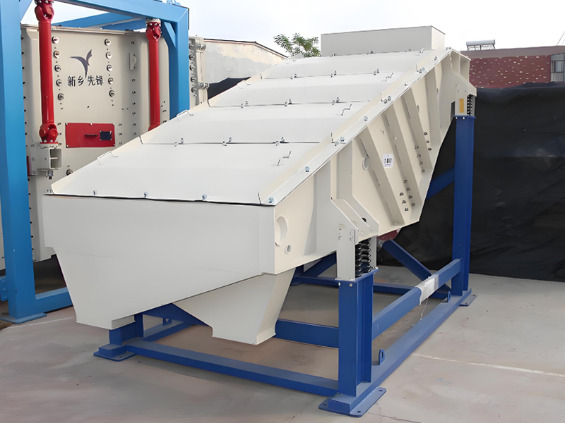 当筛机起动后,呈对称布置的两台相同型号和规格的振动电机或激振器作同步反向运转,其产生的激振力通过传振体—电机或激振器底座传递到整个振动体—筛箱上,使筛箱带动筛面作周期性振动,从而使筛面上的物料随筛箱一同作定向跳跃式运动,其间,小于筛面孔径的物料通过筛孔落到下层,成为筛下物,大于筛面孔径的物料经连续跳跃运动后从排料口排出,完成筛分作业。