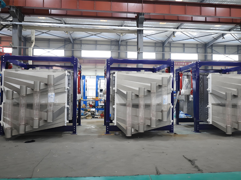 筛机启动后,筛机摇动体即筛箱在惯性力的作用下作前后往复运动,筛箱带动筛面作周期性摇动,从而使筛面上的物料随筛箱一同作定向跳跃式运动,期间,小于筛面孔径的物理通过筛孔落到下层,成为筛下物,大于筛面孔径的物料经连续翻滚跳跃运动后从排料口排出,从而完成筛分工作。